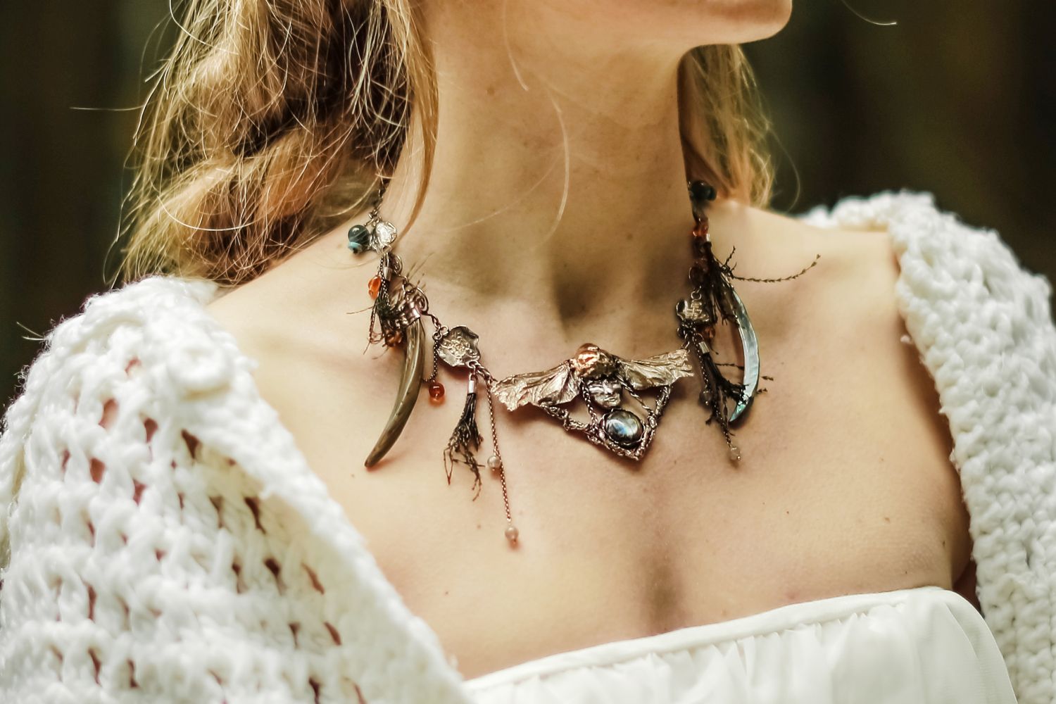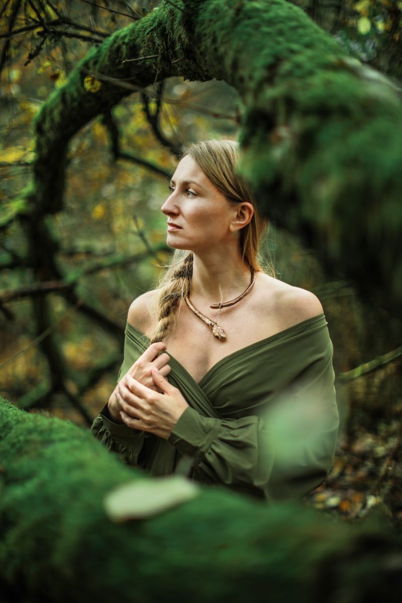 Modelka ma na sobie naszyjnik „Walkiria”