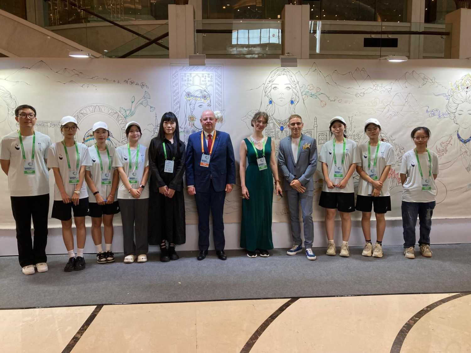 Cooperation with Chengdu University of Technology at the Intangible Cultural Heritage Festival in Chengdu – posing with Polish Consul, Piotr Nowotniak, and polish art curator Sebastian Tajl